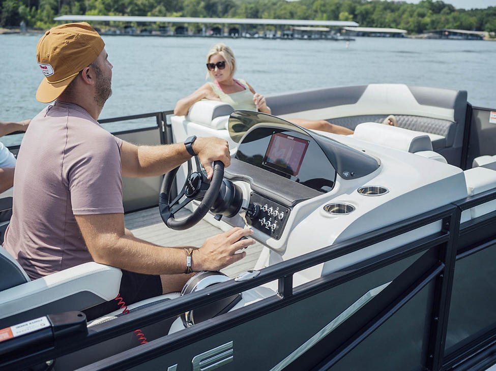 The 9" Simrad® touchscreen console and premium 6-speaker sound system let you chart the best course and command the best vibes.