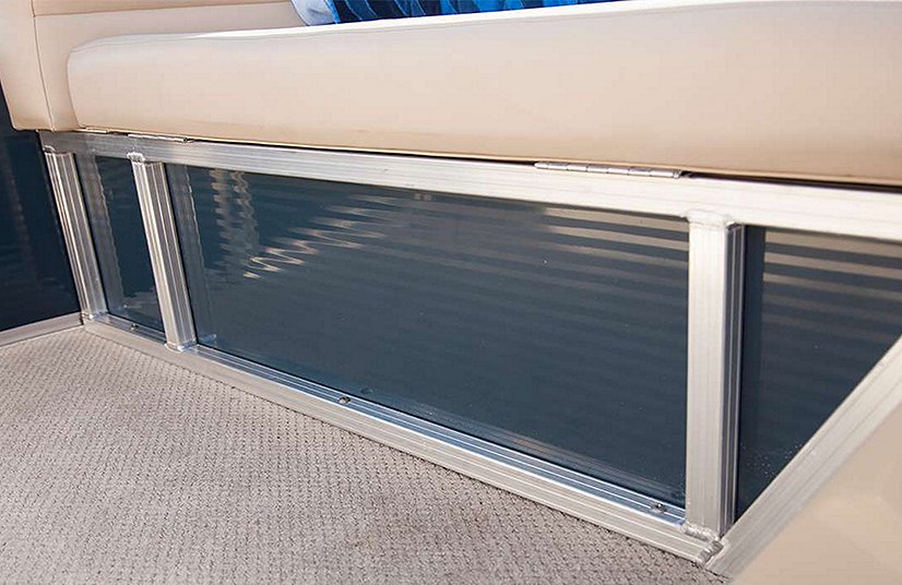 DRIVER AND PASSENGER SEATSAft bench seat with storage underneath with two cup holders and storage tray Fold down driver & passenger seats Port and starboard bow lounge benches |
