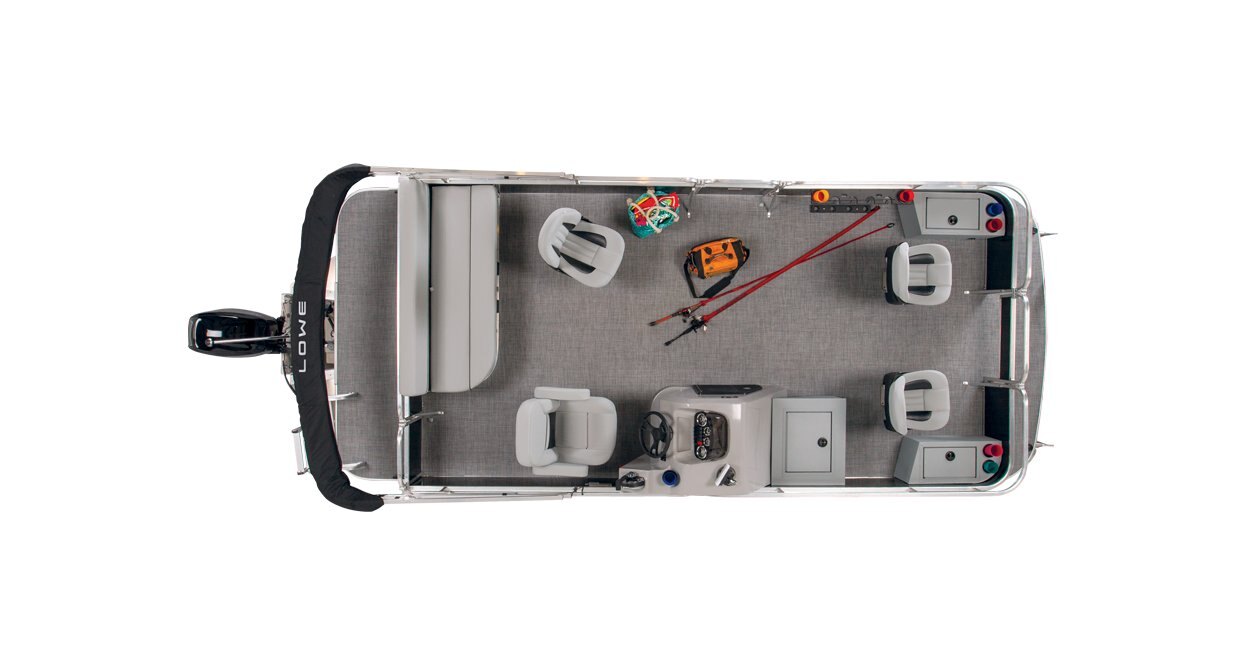 Lowe SF Series pontoons and Ultra Fish & Cruise pontoon boat models feature an array of options to satisfy even serious anglers with features including rod holders, tackle storage, livewell, trolling motor and fishfinder options, fishing stations, and more.