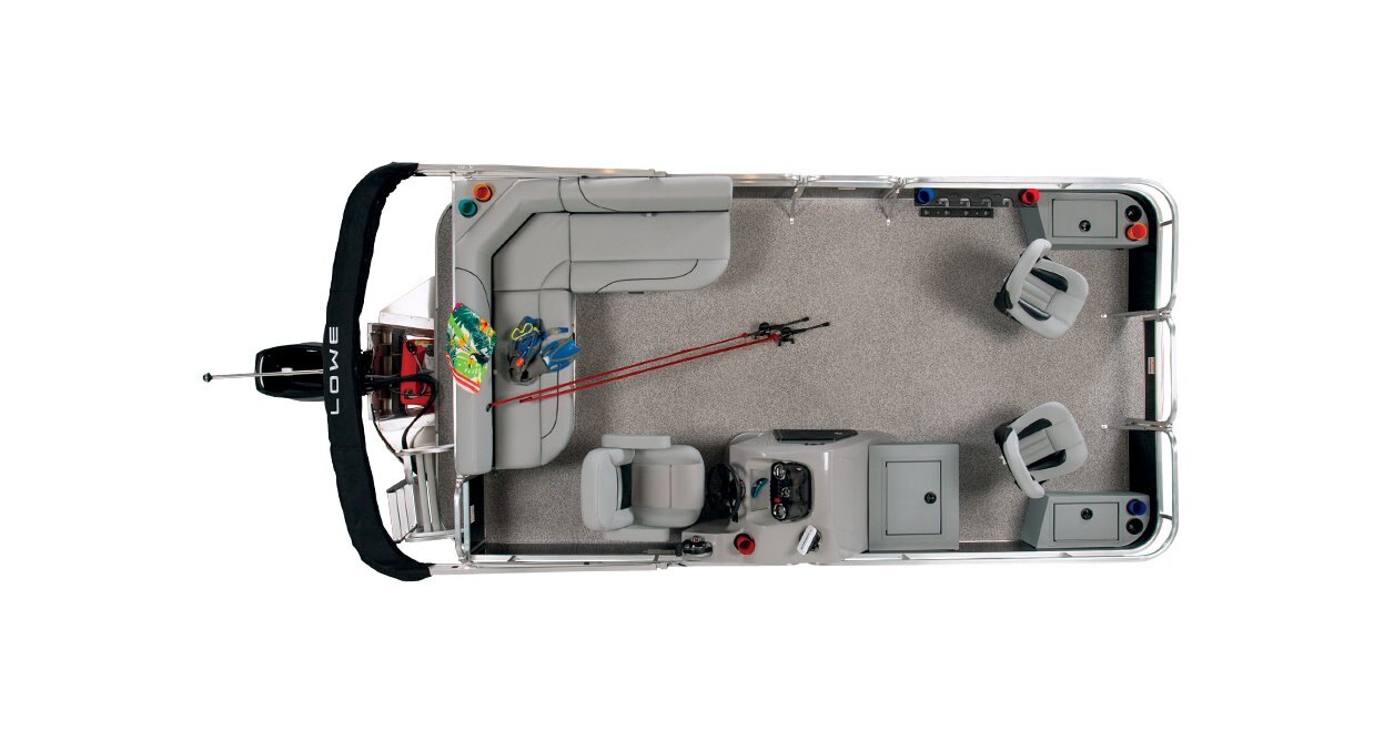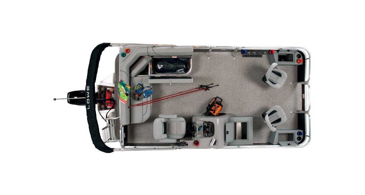 Lowe SF Series pontoons and Ultra Fish & Cruise pontoon boat models feature an array of options to satisfy even serious anglers with features including rod holders, tackle storage, livewell, trolling motor and fishfinder options, fishing stations, and more.