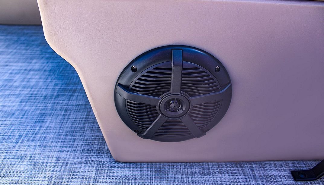 The ergonomically designed fiberglass console boasts a Kicker® KMC45 stereo system, adjustable phone mount, USB port, and a padded chuck tray with two cupholders. Two built-in storage areas offer additional space to stow it all away.
