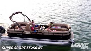 The SS250 WS is a game-changer in the Lowe Boats pontoon lineup. The sleek sporty style of the new tinted glass windshield is a true head-turner....