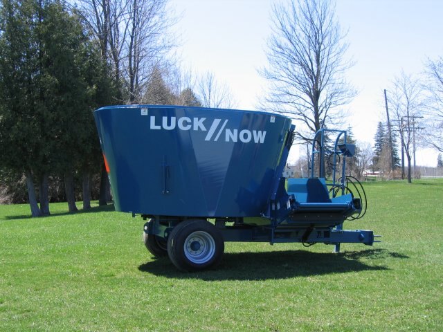 A durable and rugged mixer feeder with a single vertical mixing screw.