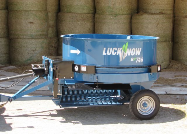 | After considerable market demand, LuckNow Products is proud to reintroduce its line of Bale Processors to augment its time proven mixer feeder line. The new and improved BP744 model has a 7 foot diameter tub capable of processing all of the round or square hay and straw bales you can throw at it. It includes a discharge side capable of spreading processed material up to 40 ft away with a 10 ft wide spread and an opposite side capable of piling in windrows. Built with the same rugged and reliable design like all other LuckNow Products, the new Bale Processor will keep on processing for years and years. |
