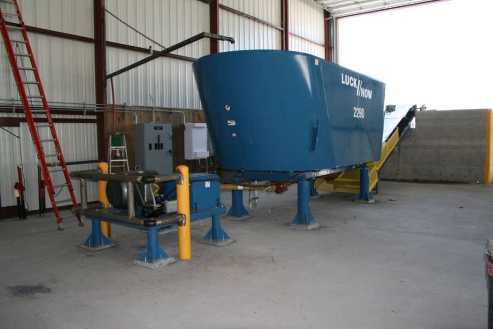Single screw vertical mixers in a stationary version with capacities of 210 or 320 cubic feet.