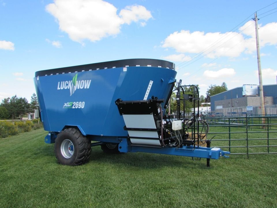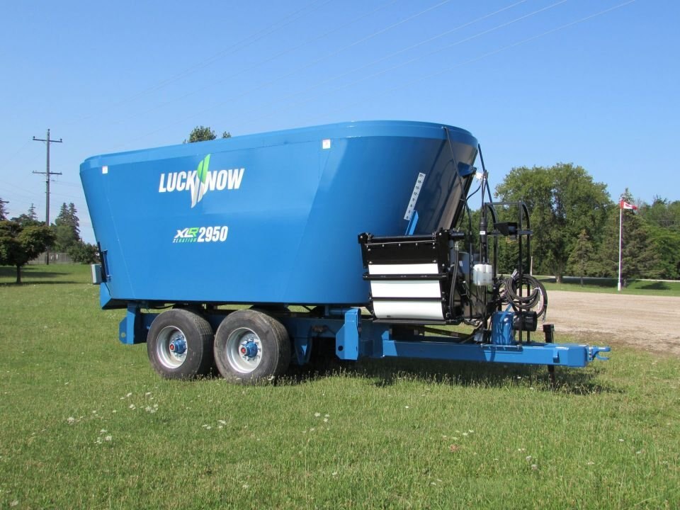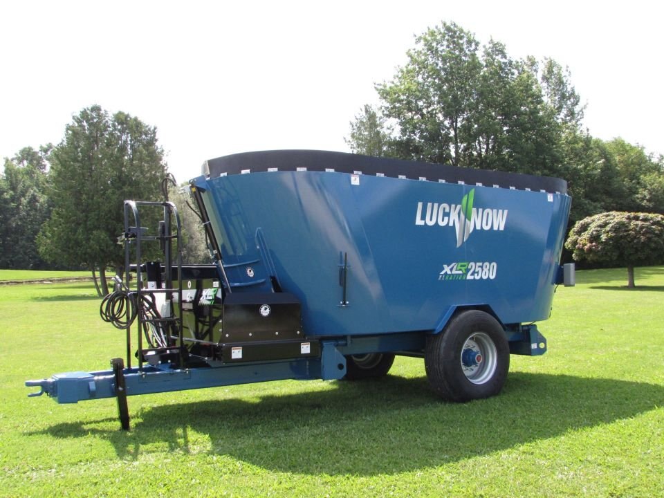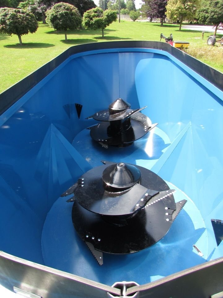 Twin screw vertical mixers in a trailer version with capacities from 580 to 1290 cubic feet. The mixing auger is pto driven, the door and discharge are hydraulically operated. The large screw auger design enables the processing of many varieties of big square or round bales, allowing them to be combined with silage and other commodities.