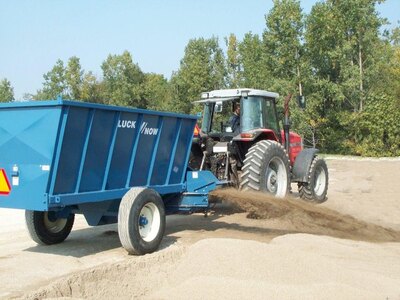 LuckNow's Material Handler can be used to spread/discharge materials up to 16' away. 7 cubic yard capacity. Materials: sand, sawdust, bark,...