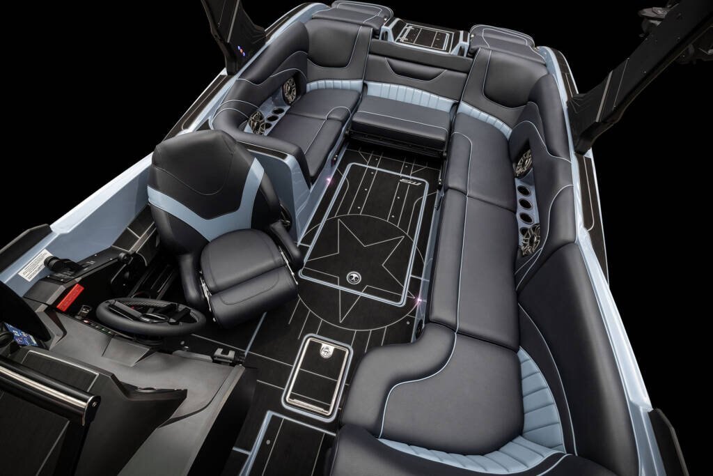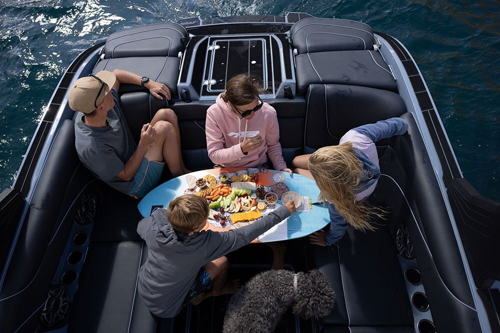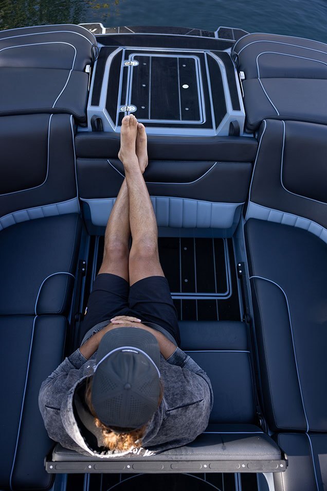 DISTINGUISHED INTERIORThe B52 23 Alpha is the ultimate in wakesurf performance and family fun. With room for 16 people, 4,150 lbs of ballast, and an easy-to-use surf system, this boat will take your surf experience to the next level. |