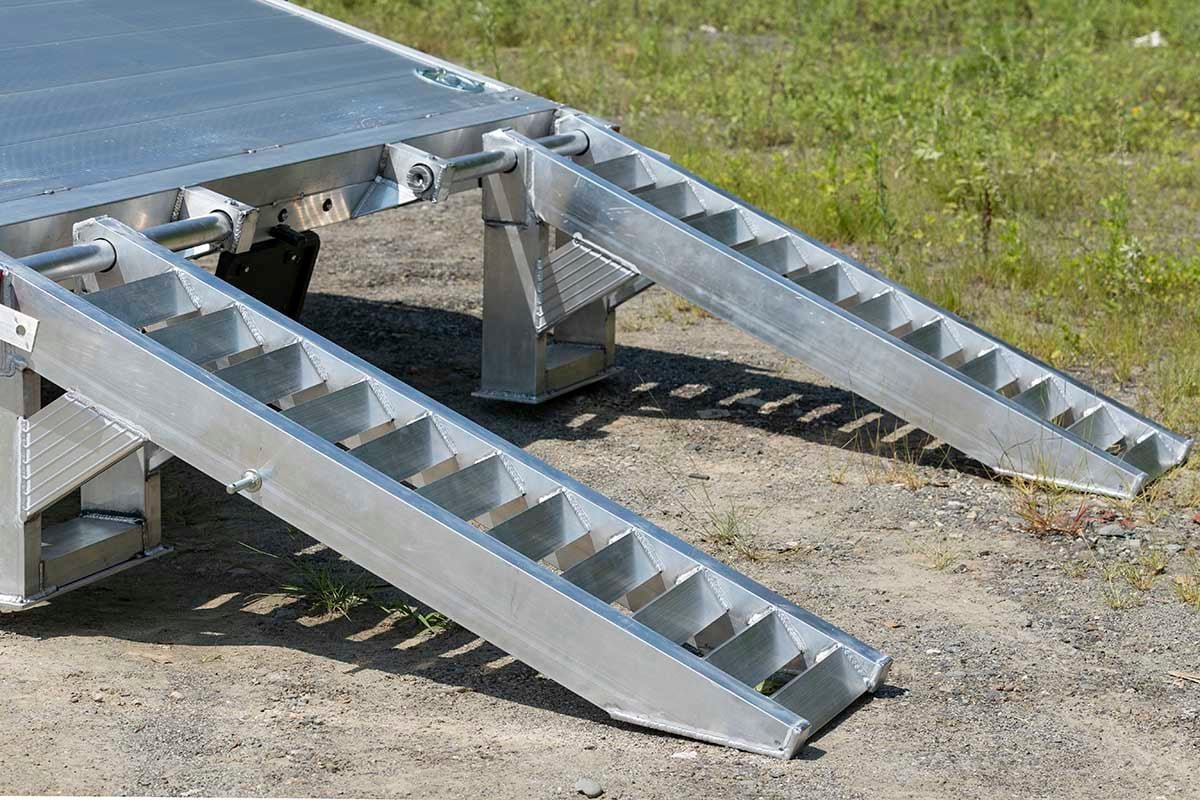 No matter where you go, you'll be prepared with these adjustable, heavy-duty ramps that stay fixed to the rear of the trailer. |