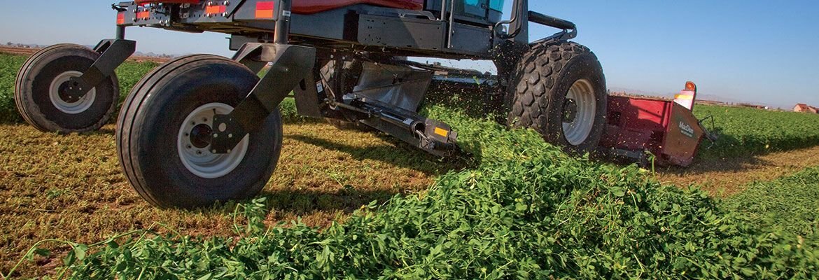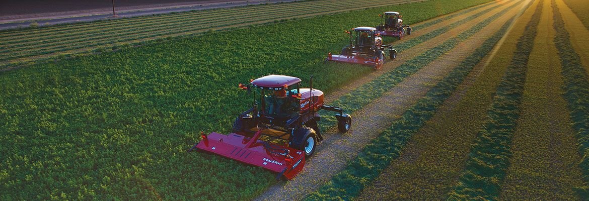 Switching from field to highway mode takes only three seconds with MacDon’s Dual Direction® technology. (Available on M205 and M155).