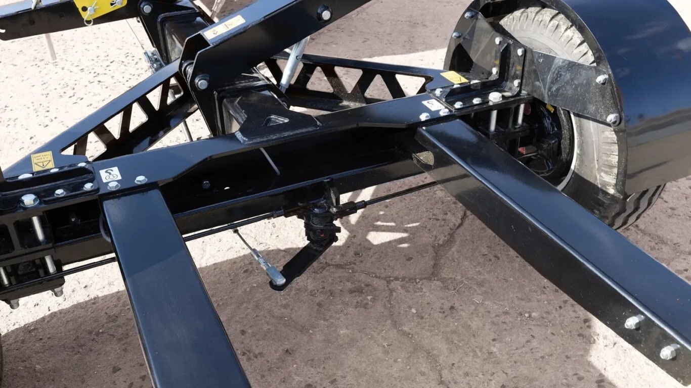 MacDon specific supports; adjustable alignment gauge; adjustable support arm with turnbuckles; support arms adjustable laterally; rear tie-down locations; lift-assisted tow bar |