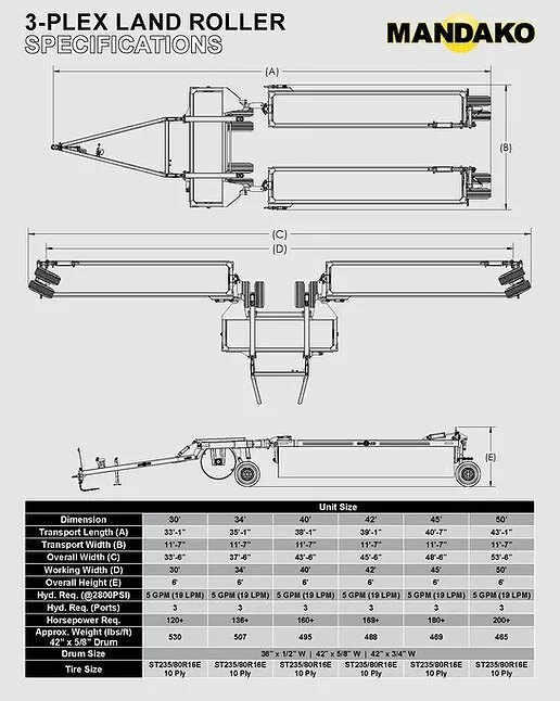 3-Plex Landrollers are offered in the following configurations: