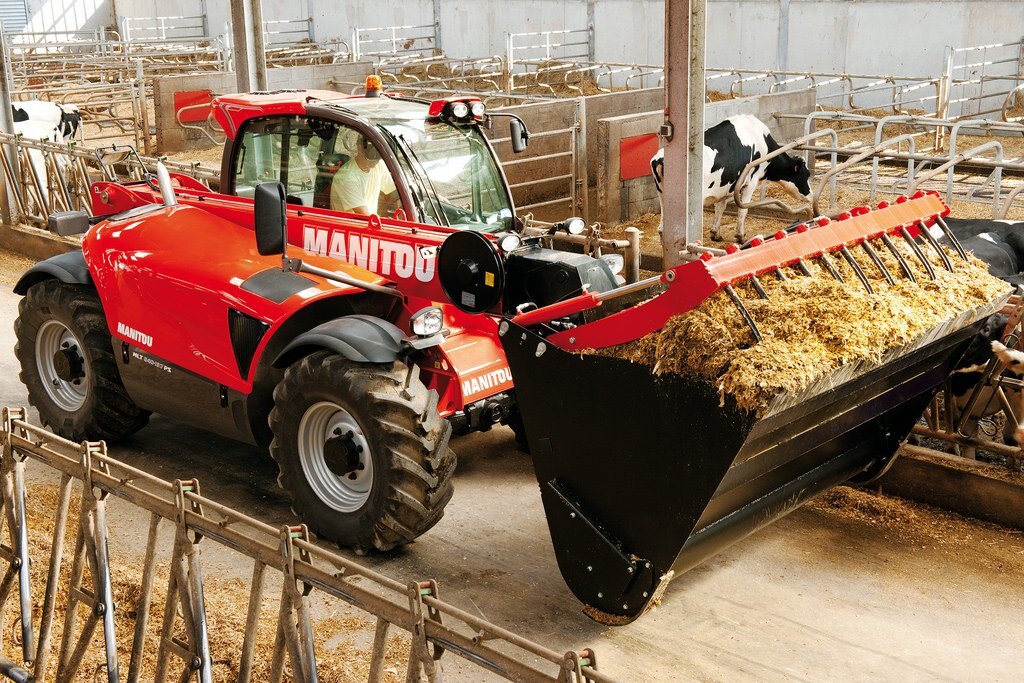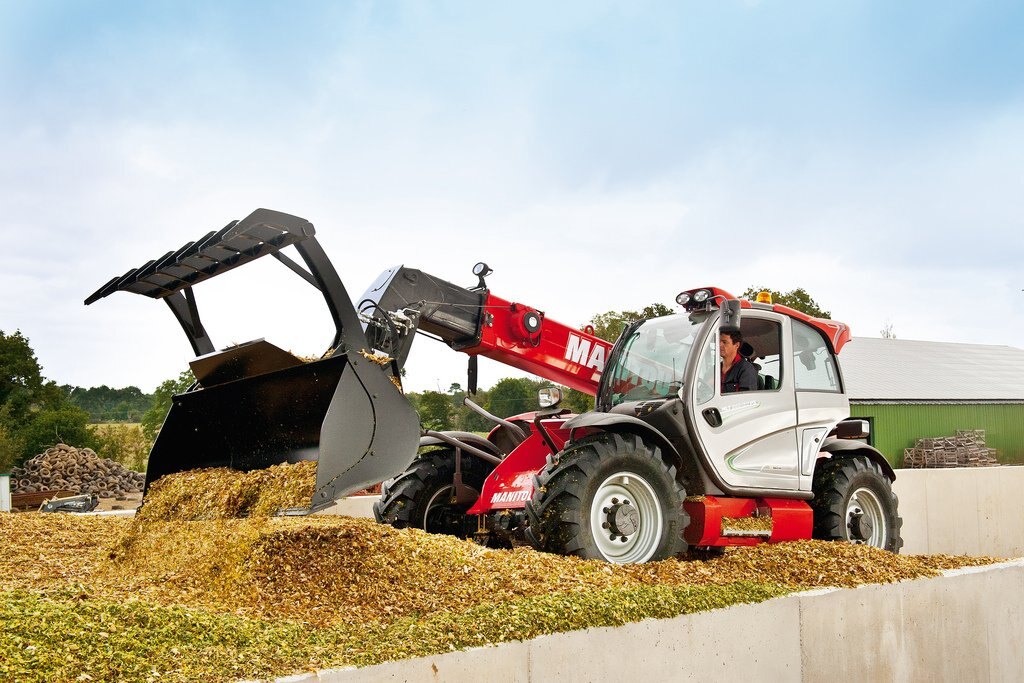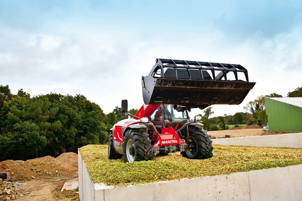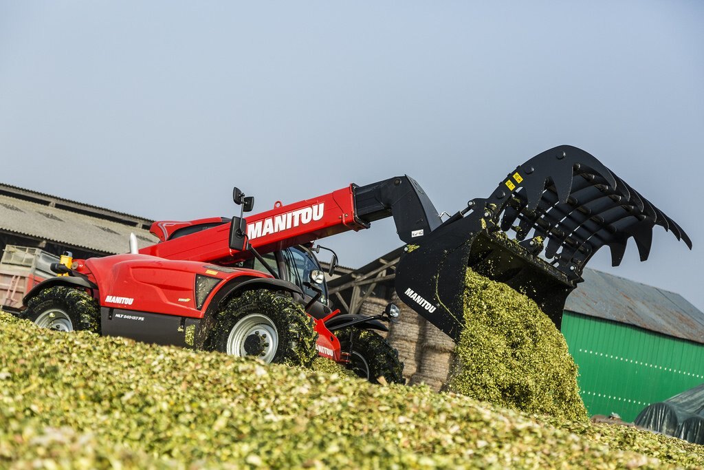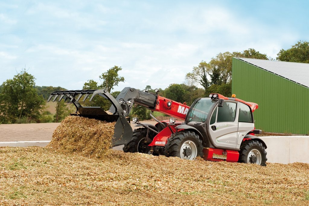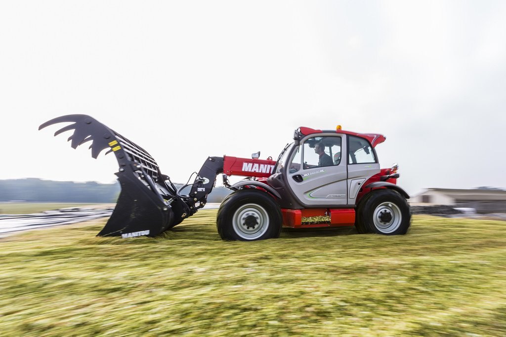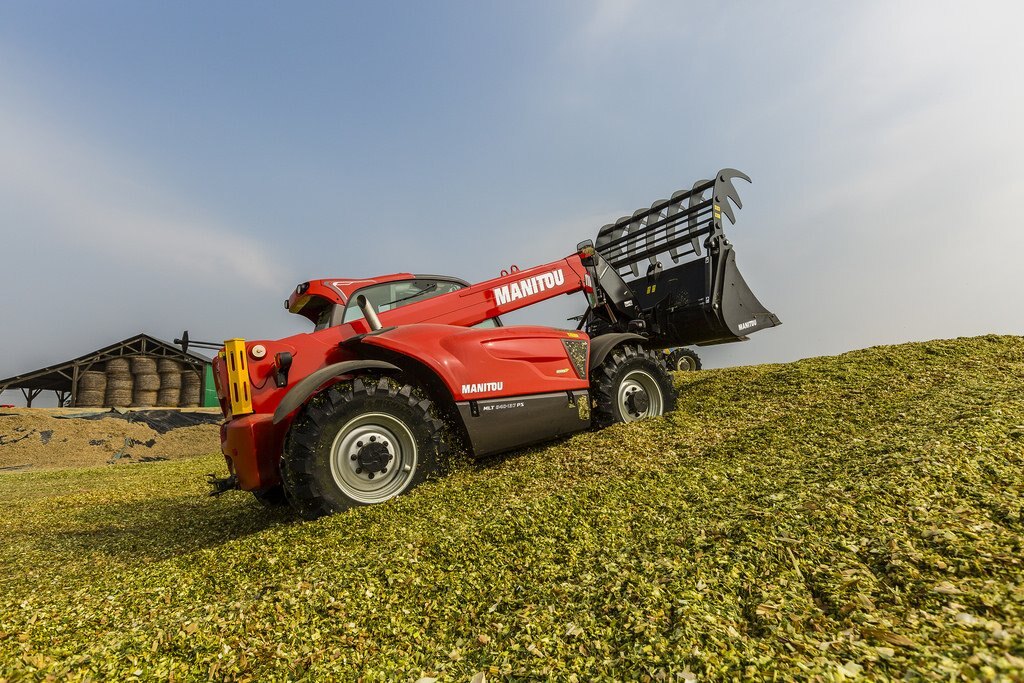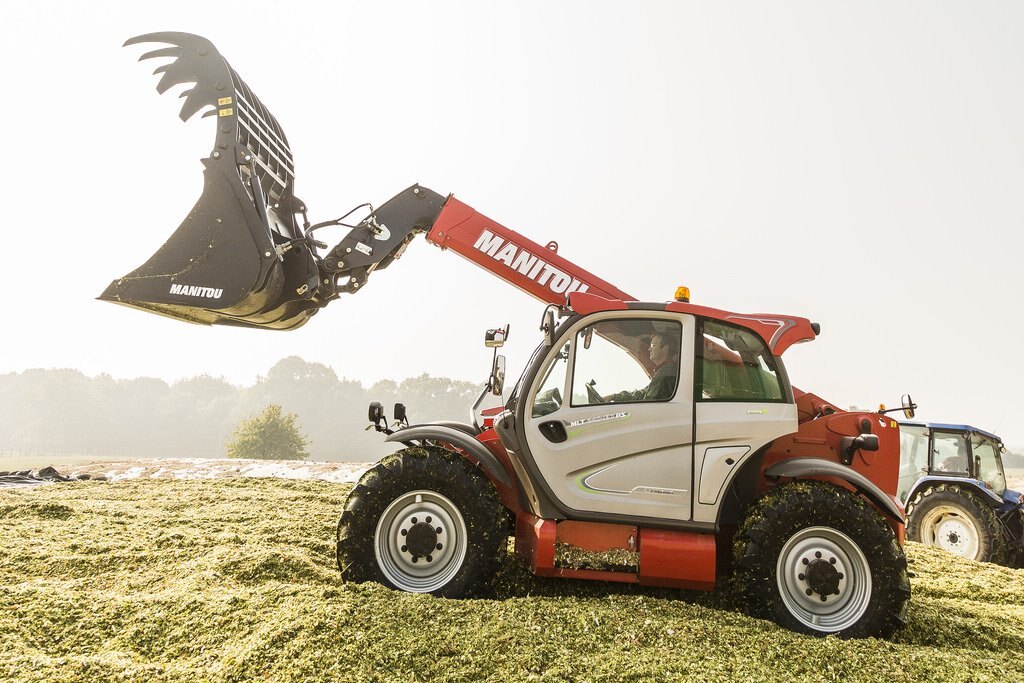 The MLT 840-115 PS is a telehandler dedicated to agricultural activities. Agricultural profile tyres, high ground clearance, excellent traction capacity and high hydraulic flow rate make this truck a real boon for all your day-to-day operational tasks. We know that you will be spending long periods of time in your telehandler, and for that reason we have created a soundproofed cabin (74 dB), with a JSM joystick mounted on a floating armrest, roomy cabin interior, and automatic alignment of the wheels, all designed to give you the comfort you deserve. The 115 hp engine meets Stage IV / Tier 4 Final standards. The M-Shift 5-speed gearbox gives you smooth gear changes and selects the optimal gear in automatic mode. The Lock-up function applies a direct lock to the torque converter and improves the efficiency of your machine, increasing its drawbar pull and reducing fuel consumption. The electronically regulated cooling system controls the fan speed according to engine temperature; the air flow inverter allows your telehandler to breathe under all conditions, enabling you to reduce your fuel consumption while ensuring that cooling is always optimal.