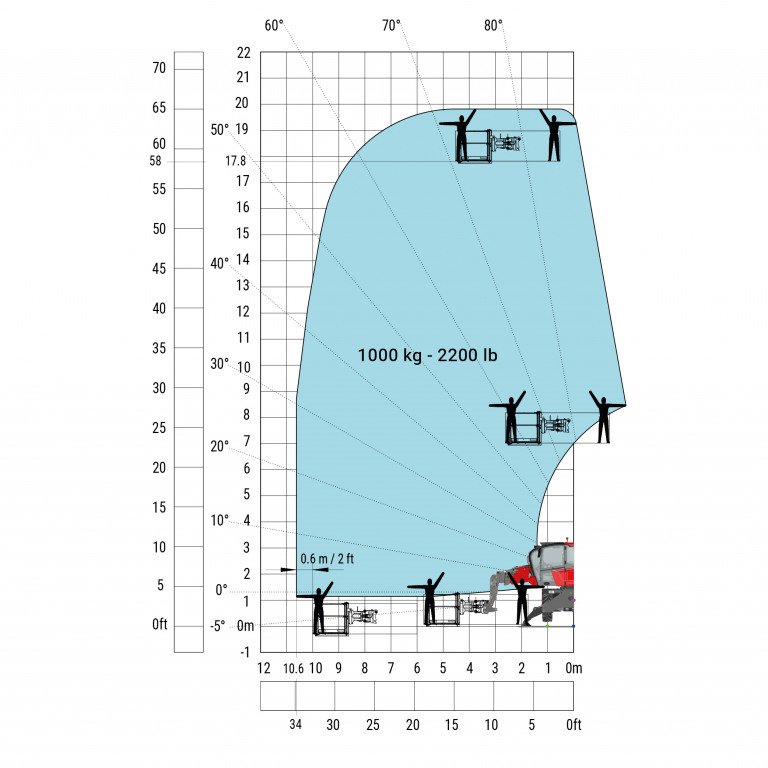 Machine on lowered stabilisers with 1000 kg platform Metric