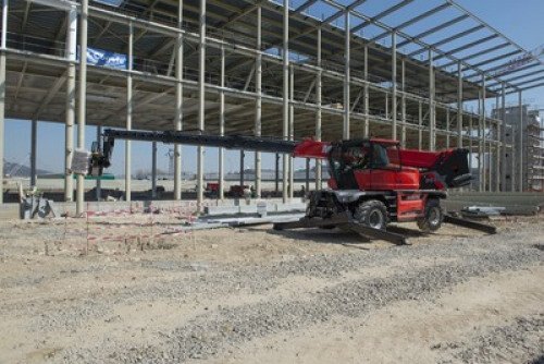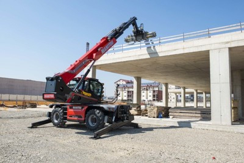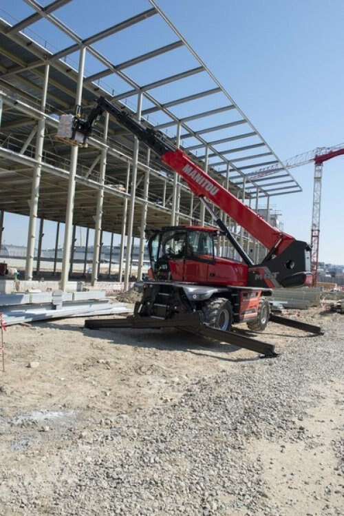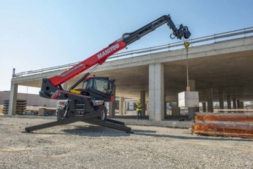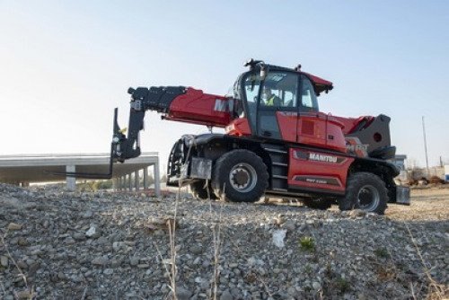 The MRT 2260 is a powerful all-terrain rotating telescopic handler. This 3-in-1 machine is a telescopic handler, winch and aerial work platform with a multitude of compatible attachments for versatility and performance on your construction and industrial sites. 360° rotation of the turret and its exceptional cab visibility allows you to perform operations more easily without having to move the machine. The pentagonal section of the boom allows for precise movement and stability of the machine with automatic leveling of the stabilizers. Equipped with smart features for optimum handling and safety, the MRT 2260 is the tool you won't want to do without!