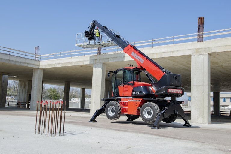 The MRT 1845 115 telehandler is equipped with 3 steering modes offering perfect maneuverability, thus adapting to all types of construction sites. Thanks to the rotation of the turret, it is possible to operate in a modular work area without having to move the machine. A true 3-in-1 concept, it can be used in telescopic handler, aerial work platform and winch mode, working on tires or stabilizers which reinforce its versatility. The MRT 1845 115 has an intelligent dashboard and all the necessary features to guarantee exceptional comfort and ergonomics: panoramic visibility, adjustable cab elements for each operator, safe machine... Simple and powerful, an essential asset to have by your side!