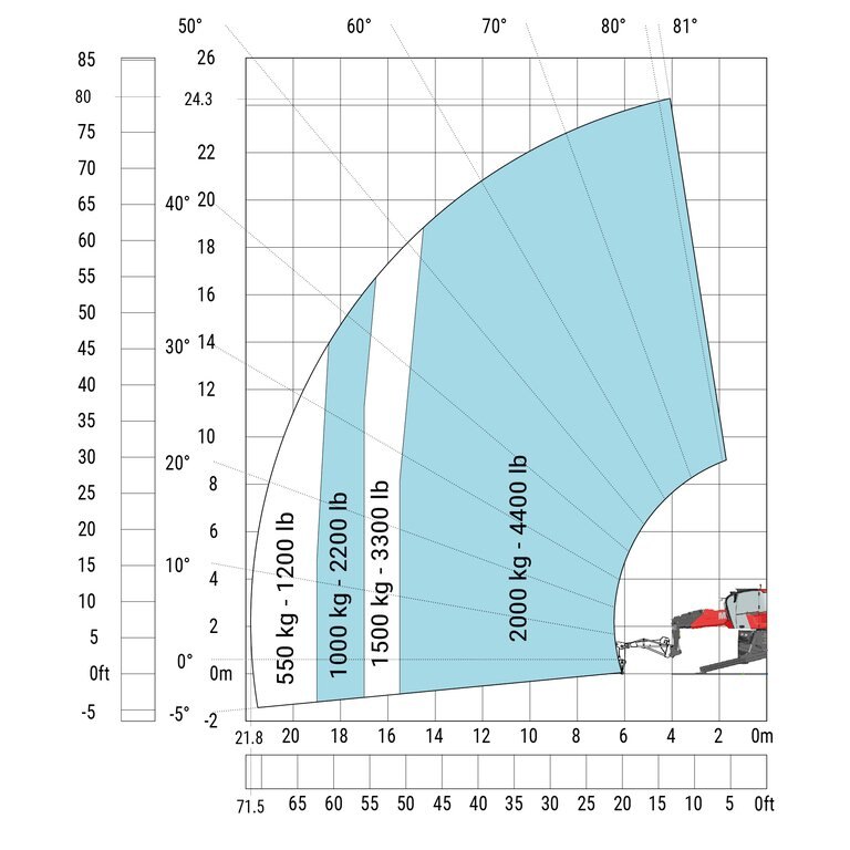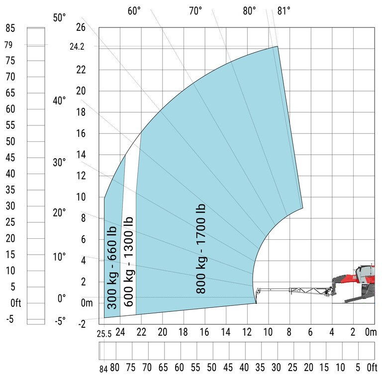 The MRT 2570 is a powerful all-terrain rotating telescopic handler. This 3-in-1 machine is a telescopic handler, winch and aerial work platform with a multitude of compatible attachments for versatility and performance on your construction and industrial sites. 360° rotation of the turret and its exceptional cab visibility allows you to perform operations more easily without having to move the machine. The pentagonal section of the boom allows for precise movement and stability of the machine with automatic leveling of the stabilizers. Equipped with smart features for optimum handling and safety, the MRT 2570 is the tool you won't want to do without!