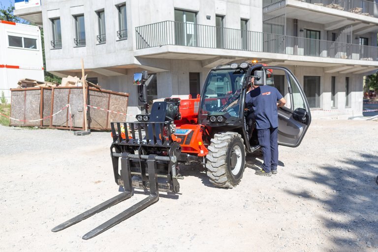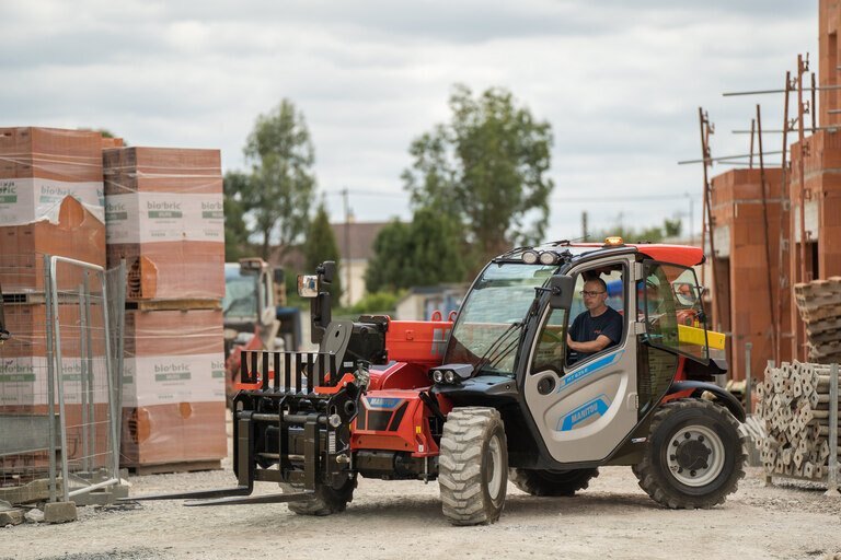 The first 100% electric Manitou fixed telescopic handler, dedicated to construction applications! A compact, versatile machine for all your material handling applications, combining low noise and zero emissions, with no compromise on performance. 5.85m lifting height, 2.5 tons capacity, 33cm ground clearance, combined hydraulic movements, and compact dimensions, the MT 625 e is a true all-terrain machine, also favored for working on compact, low-emission worksites such as urban centers or indoor applications. Designed with Lithium-ion batteries and an on-board charger, you can add an extra battery and charger to extend on-site autonomy, and charge your machine more quickly. |
