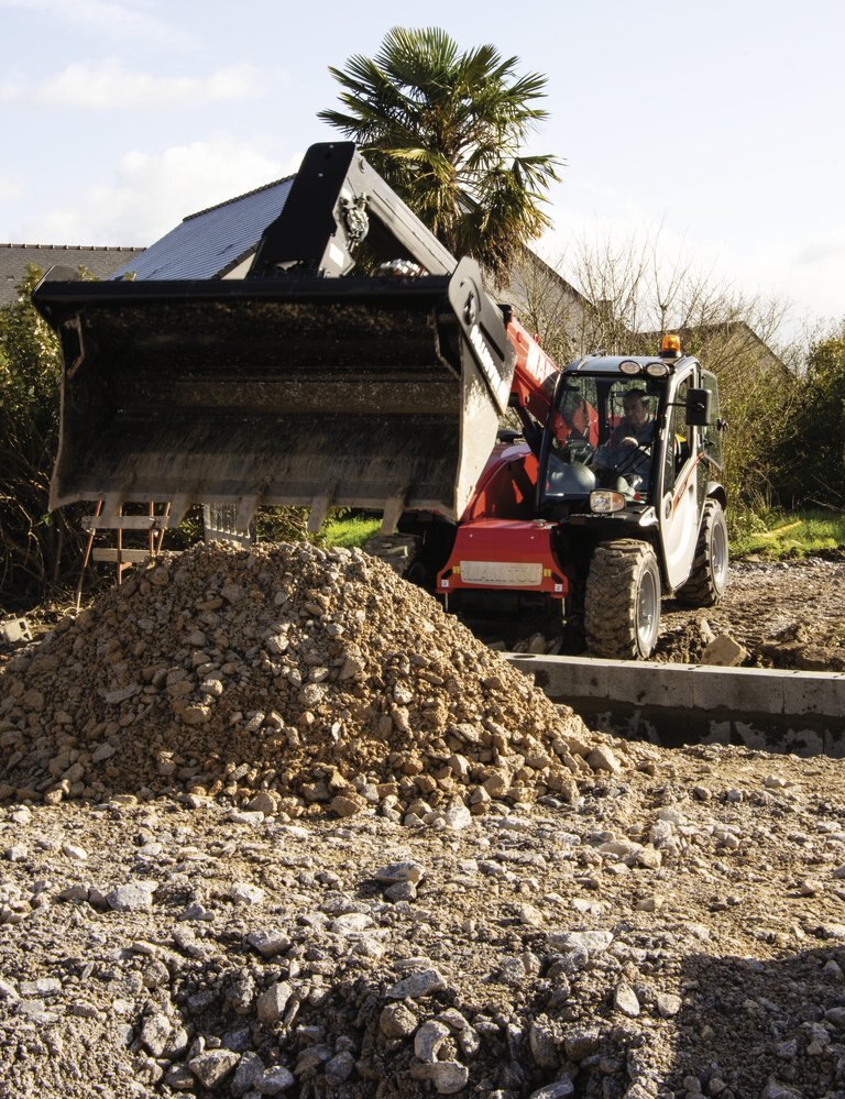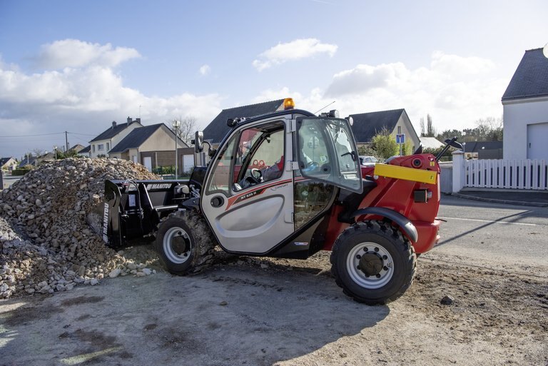 The MT 625 H telehandler is specially designed for building sites and renovation projects involving lower heights. Its compact dimensions - with a width of 1.8 m and under 2 m in height - mean you can easily pass under thresholds and navigate congested areas. Its 3.3 m turning radius and 3 steering modes available provide you with excellent maneuverability. Easy to use, this handler features an ergonomic instrument panel and JSM-equipped joystick to easily execute all machine funtions in one control. The MT 625 H has a lift capacity of 2.5 t, with a maximum lift height of 5.85 m. Its 75 hp engine reaches speeds of up to 25 km/h. Maintenance is made easy with the wide opening angle of the engine hood. The 90 l gear pump allows for simultaneous movement of the boom and telescope for increased productivity.