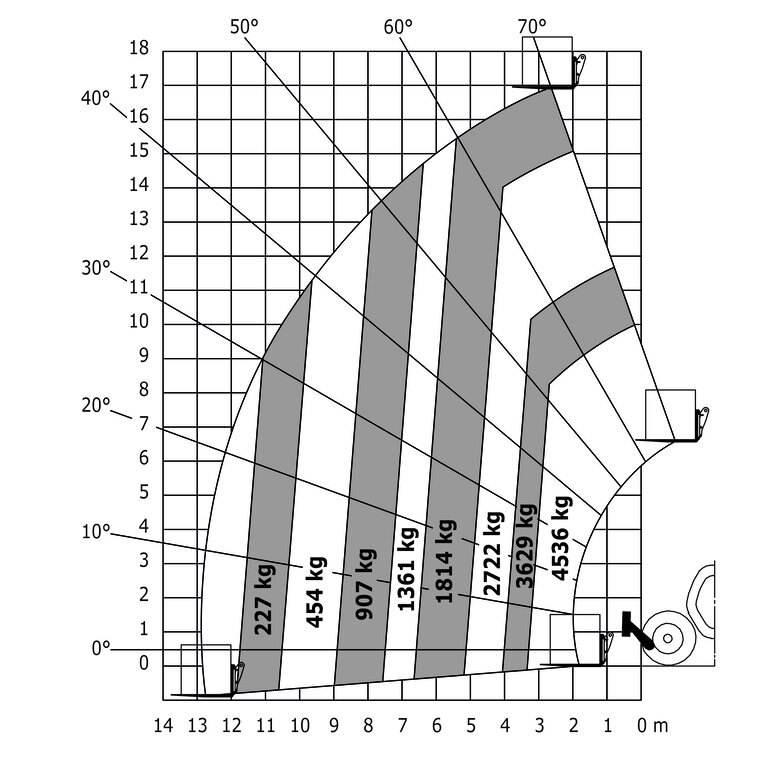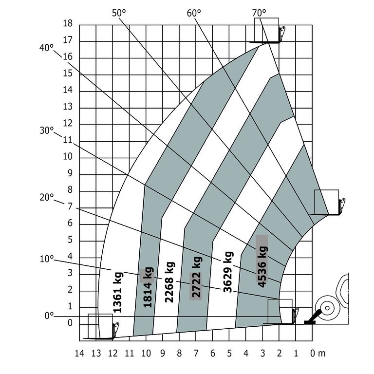 The MTA 1055: high lift with full power performance. MTA 1055 has 10,000 lbs. (4,536 kg) capacity with max lift to 55' 7" (16.9 m) and reach to 42' 3" (12.9 m). Deutz 127 HP and 5 speed power shift trasmission.