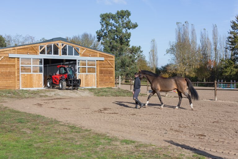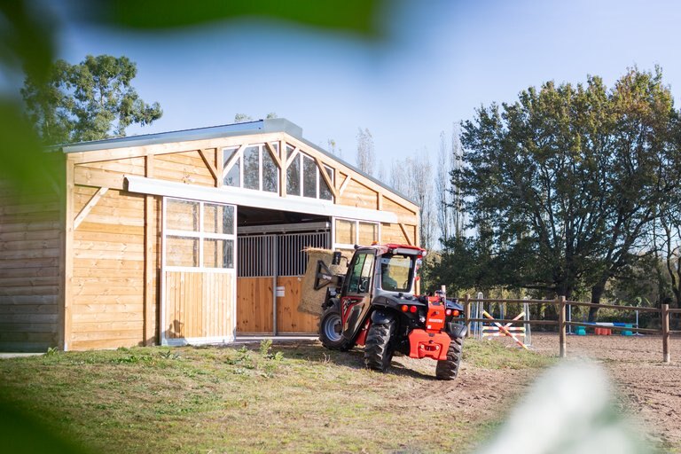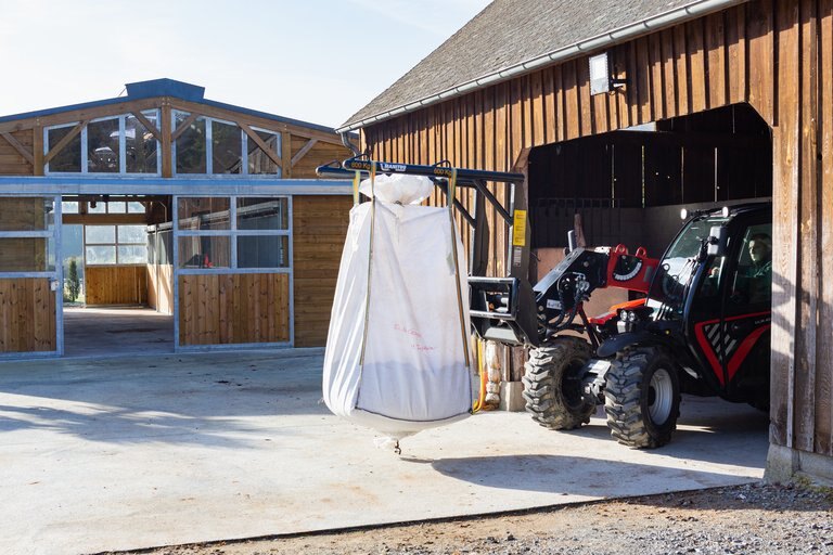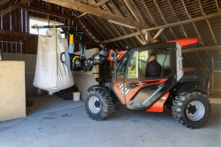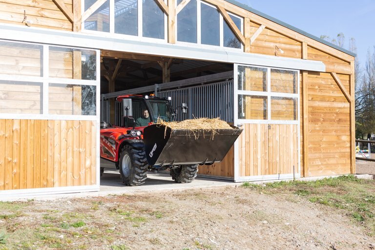 The ULM telehandler is designed to help you save time and money. It is adapted to many types industries: lanscaping companies, riding schools, building companies... Thanks to its 1.25 t or 1.5 t capacity (2 models are available), the ULM can easily place pallets of blocks or bricks, straw or hay bales... Its ultra compact dimensions and rough terrain abilities make this machine particularly adapted to work in tight spaces on all types of grounds. Due to its lightweight, the ULM can also easily be transported on a small trailer. If you need to fully adapt your machine to your environment, numerous options are available: the auto reversing fan, the air prefilter, a full range of tyres...