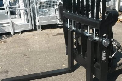 Hydraulic Floating Fork Positioner Increases the efficiency of pallet handling and saves time, driver stays in the cab to adapt fork spread...