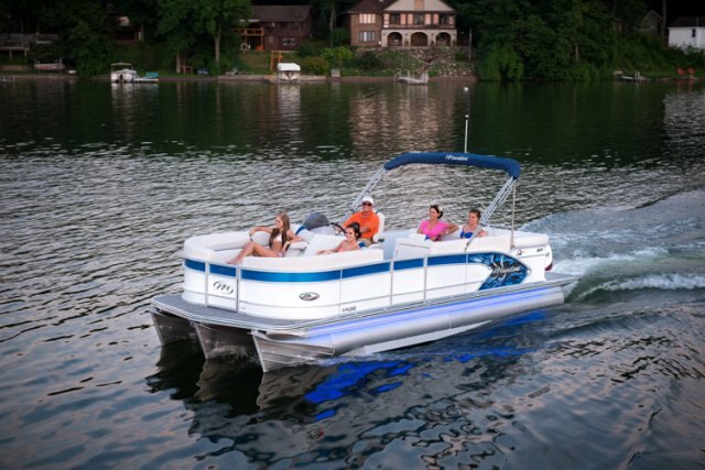 A thrill-seekers dream - the X-PLODE is a high-performance pontoon from bow to stern, topside to hull. Standard Hydraulic Power Assist Steering and up to a 300 HP power engine offer ample get-up-and-go with extra crisp handling. 2014 models feature a new graphics package as well as the new SRS Seating Group, which offers split rear seats that convert to luxurious loungers. So grab a seat and let the fun begin!