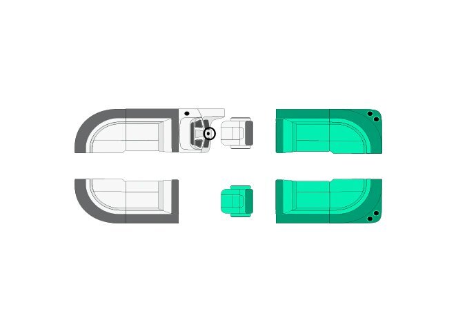 Corner Castings, Powder Coated Crossmembers, Extruded Aluminum Deck, Limited Lifetime Warranty Fasteners, Stainless Steel Furniture, Roto-mold Keels, Full-length Extruded Aluminum (NA SHP & VP) Lift Gates Mooring Cleats, Stainless Steel, 4 Mooring Eyes Motor Mount, Aluminum w/Splash Shields NMMA Certified using ABYC Standards Nose Cones, Anti-spray integrated splash fins Pontoon Tubes, 23" Diameter Powder Coated Rub Rail Riser Brackets, "M" Style Transducer Bracket Wall Spacers, Deck Draining Wall Tubing, Heavy Duty, .090" Thick, 1.25" Square Wall Tubing, Powder Coated