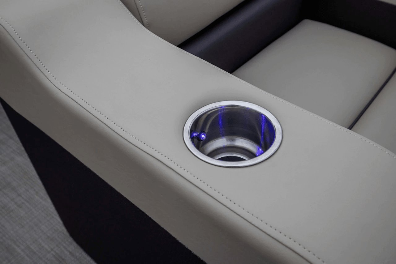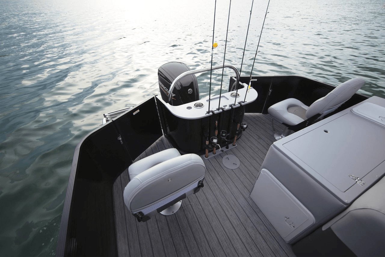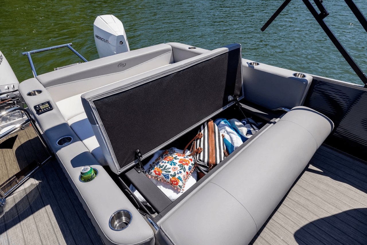 12 Volt Outlet & USB Port/Aux In 4-point Fishing (Except Optional Full Front Floorplans) Bow Eye (Twin Tube) Cooler, Soft Side Cupholders, Built-in (Qty Varies) Furniture, Matrix Marine Vinyl Gas Tank, 24 Gallon Twin Tube, 43 Gallon V-Toon Gauges - Fuel, GPS Speedo, Tachometer, Trim Gauge, Voltmeter Ladder, Rear Entry Wide 4 Step Livewell (stern) Mooring Cleats, 4 Privacy Station Assembly in Chaise (does not include Porta Potti) Rod Holders Seat Hinges, Hands Free Loading Ski Tow Bar Stern Entry Doors - 2 Waste Basket