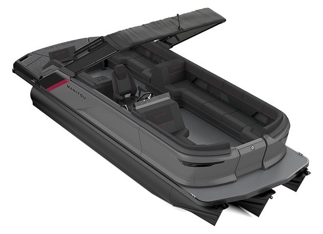 Max Deck MarineMat flooring on Max Deck, 6mm LinQ 16" Base Attachment on Max Deck Extended Bench, Port Preinstalled LinQ Attachments On Top of Wall (6) Dual Rear Switchback Loungers Dual Front Loungers Integrated Cup Holders Passenger USB Charging Ports, Front and Rear Underseat Tub Storage Storage Cubbies, Side of Captain's Helm Forward Flip Seat Hinges Ski Tow Pylon Telescoping Boarding Ladder, Starboard Stern Side of Max Deck Woven Vinyl Flooring