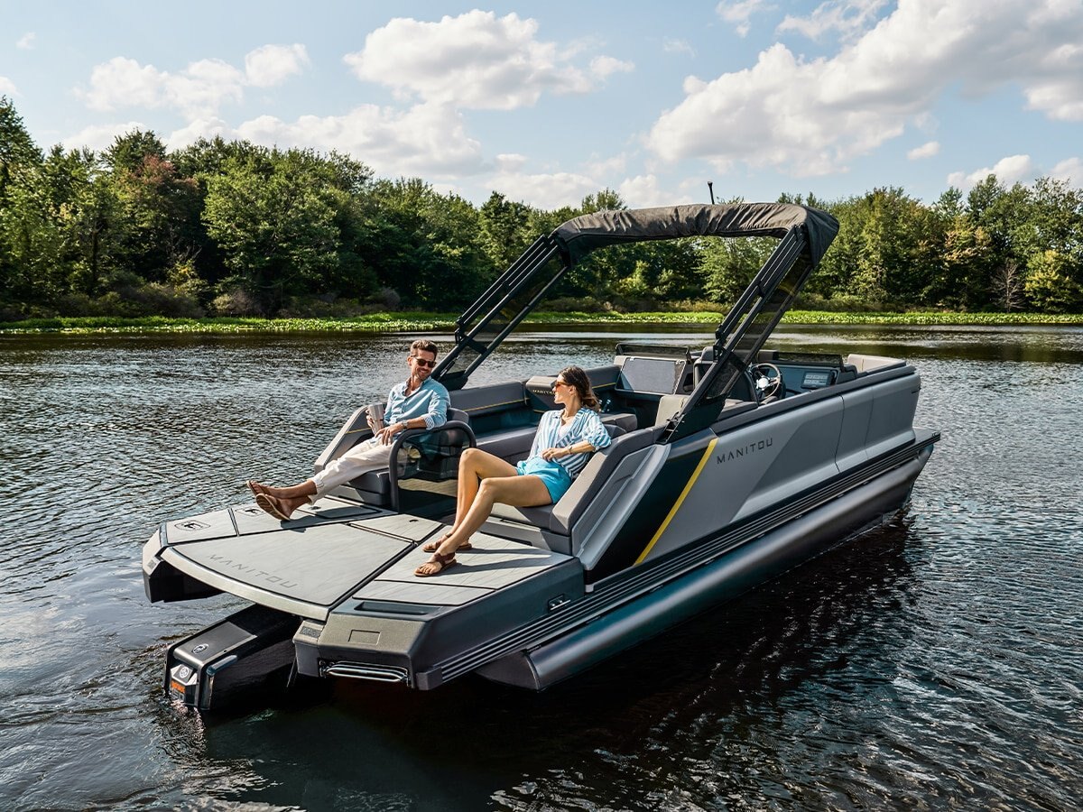 Formed Aluminum Walls V-Toon Hull Nose Cones, Anti-spray integrated splash fins Lifting Strakes (6) Molded Foam Seats 100% Composite Decking Crossmembers, Extruded Aluminum Lift Gate, Powder Coated Furniture, Simtex Marine Vinyl Mooring Cleats, Stainless Steel (4) NMMA Certified using ABYC Standards Pontoon Tube Riser, Full-length Powder Coated Rub Rail Riser Brackets, "M" Style Transducer Bracket