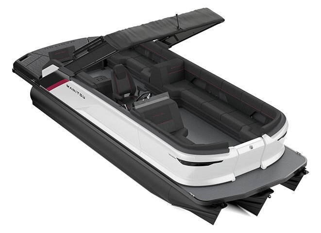 Max Deck MarineMat flooring on Max Deck, 6mm LinQ 16" Base Attachment on Max Deck Extended Bench, Port Preinstalled LinQ Attachments On Top of Wall (6) Dual Rear Switchback Loungers Dual Front Loungers Integrated Cup Holders Passenger USB Charging Ports, Front and Rear Underseat Tub Storage Storage Cubbies, Side of Captain's Helm Forward Flip Seat Hinges Ski Tow Pylon Telescoping Boarding Ladder, Starboard Stern Side of Max Deck Woven Vinyl Flooring