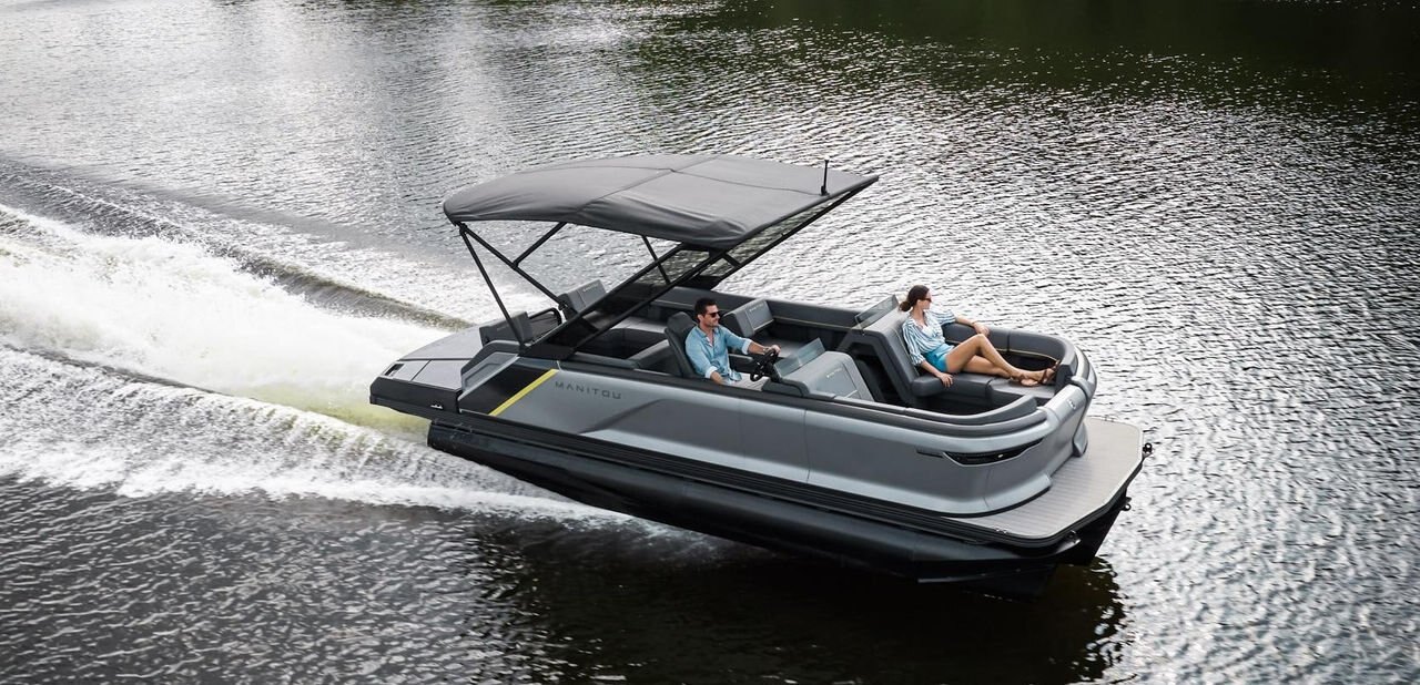 Formed Aluminum Walls V-Toon Hull Nose Cones, Anti-spray integrated splash fins Lifting Strakes (6) Molded Foam Seats 100% Composite Decking Crossmembers, Extruded Aluminum Lift Gate, Powder Coated Furniture, Simtex Marine Vinyl Mooring Cleats, Stainless Steel (4) NMMA Certified using ABYC Standards Pontoon Tube Riser, Full-length Powder Coated Rub Rail Riser Brackets, "M" Style Transducer Bracket