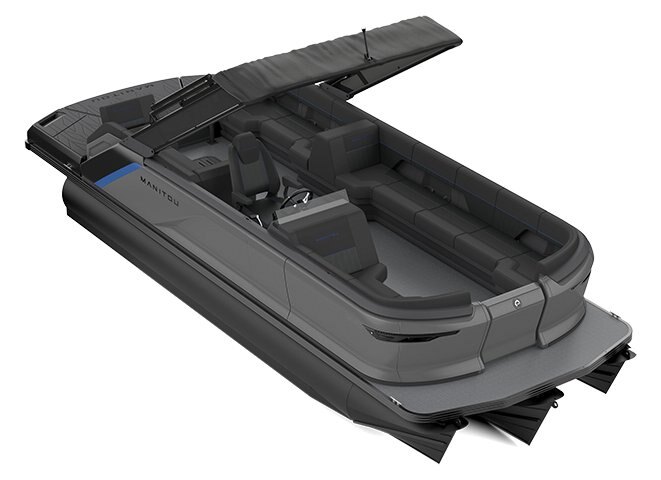 Max Deck MarineMat flooring on Max Deck, 6mm LinQ 16" Base Attachment on Max Deck Extended Bench, Port Trifold Bench w/3 in 1 Functionality Preinstalled LinQ Attachments On Top of Wall (6) Dual Rear Switchback Loungers Dual Front Loungers Integrated Cup Holders Passenger USB Charging Ports, Front and Rear Underseat Tub Storage Storage Cubbies, Side of Captain's Helm Forward Flip Seat Hinges Ski Tow Pylon Telescoping Boarding Ladder, Starboard Stern Side of Max Deck Woven Vinyl Flooring
