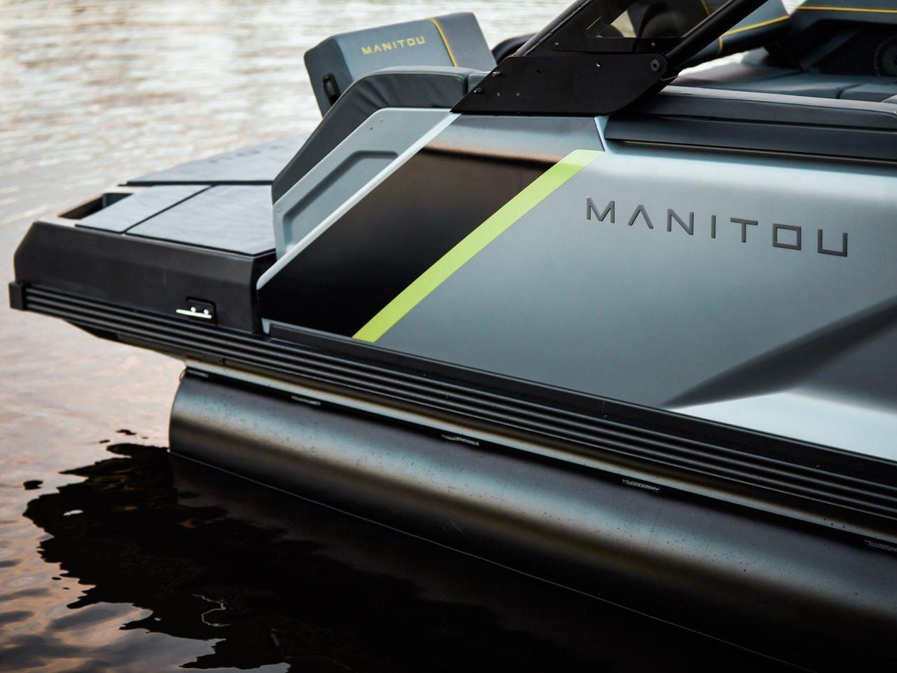 Formed Aluminum Walls V-Toon Hull Nose Cones, Anti-spray integrated splash fins Lifting Strakes (6) Molded Foam Seats 100% Composite Decking Crossmembers, Extruded Aluminum Lift Gate, Powder Coated Furniture, Simtex Marine Vinyl Mooring Cleats, Stainless Steel (4) NMMA Certified using ABYC Standards Pontoon Tube Riser, Full-length Powder Coated Rub Rail Riser Brackets, "M" Style Transducer Bracket