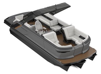 The Explore 22 MAX Switchback with trifold bench features a portside switchback lounger with a navigator helm. With max capacity there's room for up to 11 people. This model features the game-changing MAX Deck and is rigged with a Rotax outboard engine with Stealth technology.