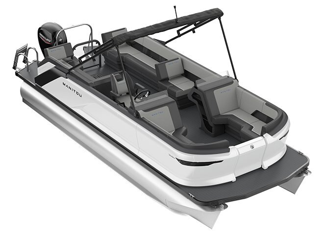 The Cruise 22 Switchback features a portside switchback lounger with a navigator helm. With max capacity there's room for up to 11 people. This model can be rigged with your choice of a traditional outboard engine.