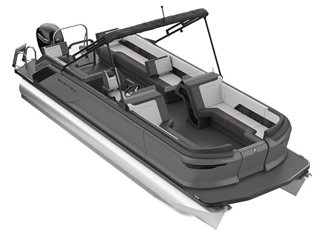 Switchback Lounger, Port Preinstalled LinQ Attachments On Top of Wall (6) Dual Rear Switchback Loungers Dual Front Loungers Integrated Cup Holders Underseat Tub Storage Storage Cubbies, Side of Captain's Helm Forward Flip Seat Hinges Boarding Ladder Woven Vinyl Flooring