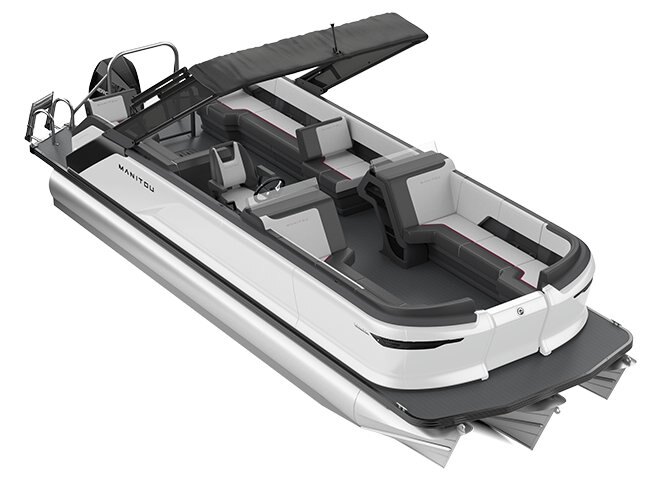 Switchback Lounger, Port Preinstalled LinQ Attachments On Top of Wall (6) Dual Rear Switchback Loungers Dual Front Loungers Integrated Cup Holders Underseat Tub Storage Storage Cubbies, Side of Captain's Helm Forward Flip Seat Hinges Boarding Ladder Woven Vinyl Flooring