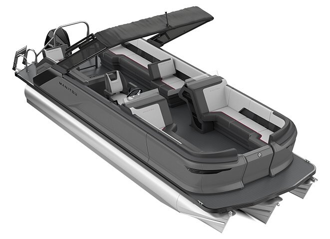 Switchback Lounger, Port Preinstalled LinQ Attachments On Top of Wall (6) Dual Rear Switchback Loungers Dual Front Loungers Integrated Cup Holders Underseat Tub Storage Storage Cubbies, Side of Captain's Helm Forward Flip Seat Hinges Boarding Ladder Woven Vinyl Flooring