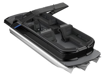 The Explore 24 MAX Switchback Dual Engine features a portside switchback lounger with navigator helm, and 2 Trifold benches. This model features the game-changing MAX Deck for up to 6 ft of additional floor space, and is rigged with dual Rotax S outboards.