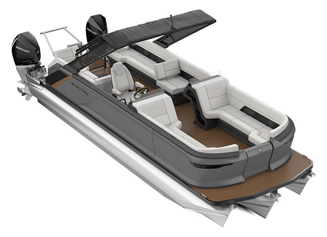 2025 Manitou Explore 24 Switchback Dual Engine Shark Gray Pearl Ice