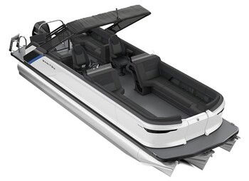 | The Explore 26 Navigator Dual Engine with Trifold Bench adds comfort where it counts with a portside navigator helm and chair. With max capacity, there's room for up to 12 people. This model can be rigged with your choice of dual traditional outboard engines. |