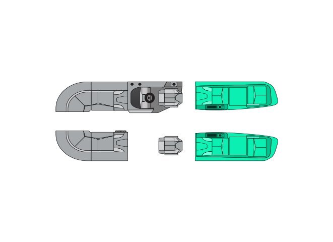 Construction & Quality Corner Castings, Stainless SteelCrossmembers, Extruded Aluminum Deck, Limited Lifetime Warranty Fasteners, Stainless Steel Furniture, Hybrid Rotomold V-Toon Hull Lift Gates Mooring Cleats, Stainless Steel (4) Mooring Eyes Motor Mount, Integrated Billet Aluminum NMMA Certified using ABYC Standards Nose Cones, Anti-spray integrated splash fins Pontoon Tube Riser, Full-length Powder Coated Rub Rail w/Stainless Steel Dock Guard Riser Brackets, "M" Style Transducer Bracket Transom Plate, Billet Aluminum (DE only) Wall Spacers, Deck Draining Wall Tubing, Heavy Duty, .090" Thick, 1.25" Square Wall Tubing, Powder Coated |