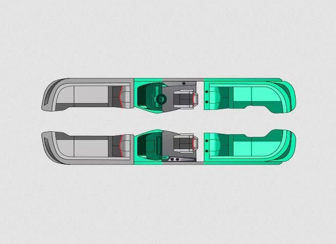 Construction & Quality Corner Castings, Stainless SteelCrossmembers, Extruded Aluminum Deck, Limited Lifetime Warranty Fasteners, Stainless Steel Fiberglass Walls Furniture, Fiberglass Base Furniture, Terero Marine Vinyl V-Toon Hull Lift Gate, Billet Aluminum Mooring Cleats, Stainless Steel, 4 Mooring Eyes Motor Mount, Integrated Billet Aluminum NMMA Certified using ABYC Standards Nose Cones, Anti-spray integrated splash fins Pontoon Tube Riser, Full-length Powder Coated Rub Rail w/Stainless Steel Dock Guard Riser Brackets, ""M"" Style Transducer Bracket Transom Plate, Billet Aluminum (Dual Engine only) |
