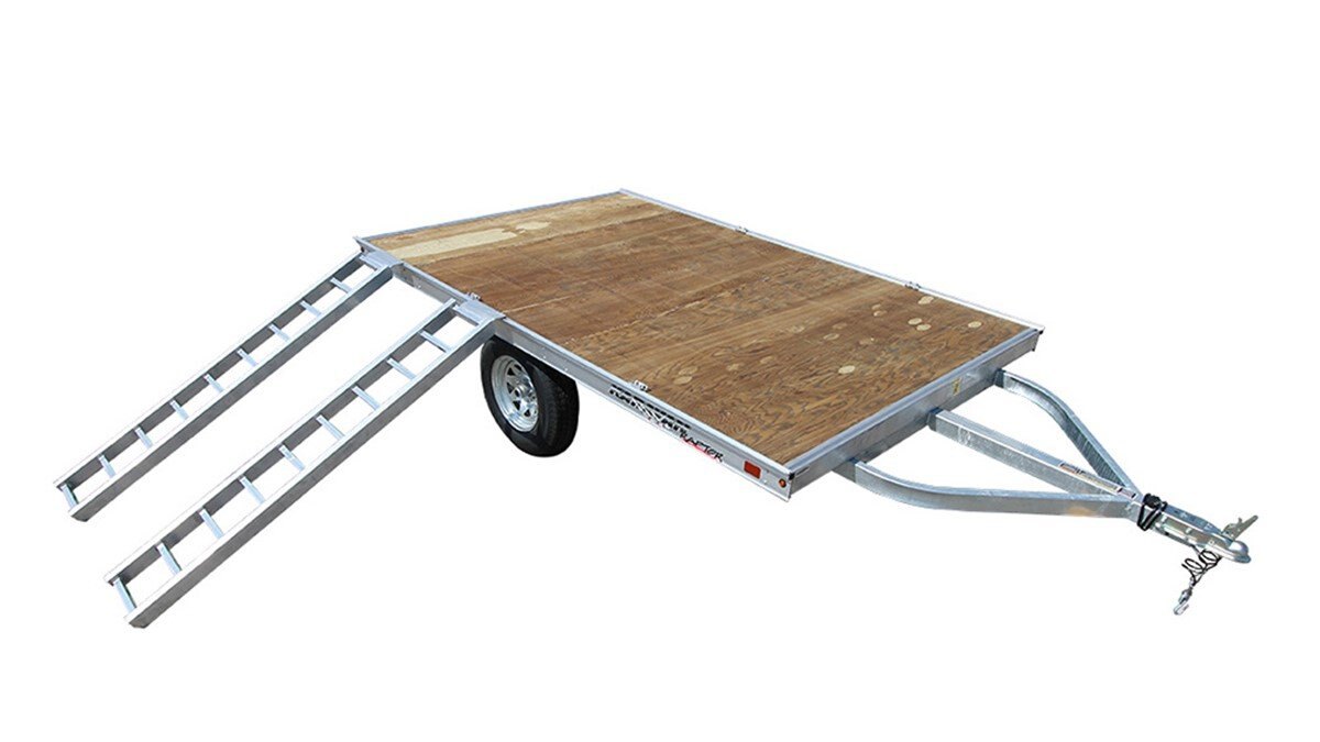 Raptor-2990-79-10-1 has 2990 lbs carrying capacity, 10' X 79" deck, single axle trailer with wishbone tongue. Built using Hybrid Frame Technology galvanized heavy duty frame with aluminum side extrusions riveted on to eliminate aluminum frame cracks. Aluminum roll out split ramps allow you to side load ATV's or end load ATV's, UTV or side by side. Available on special order with 20.5 tires or 13" tires otherwise they come standard with 14" tires.