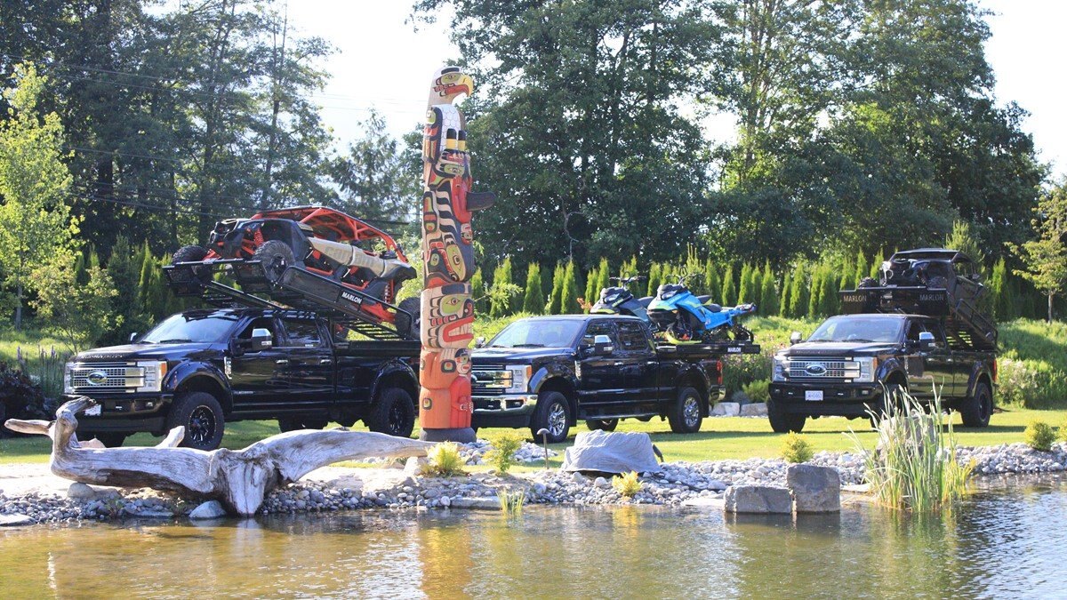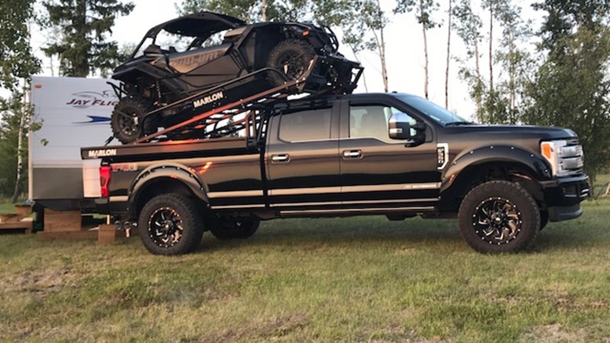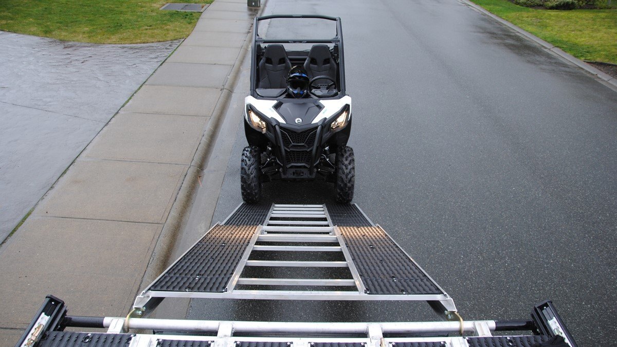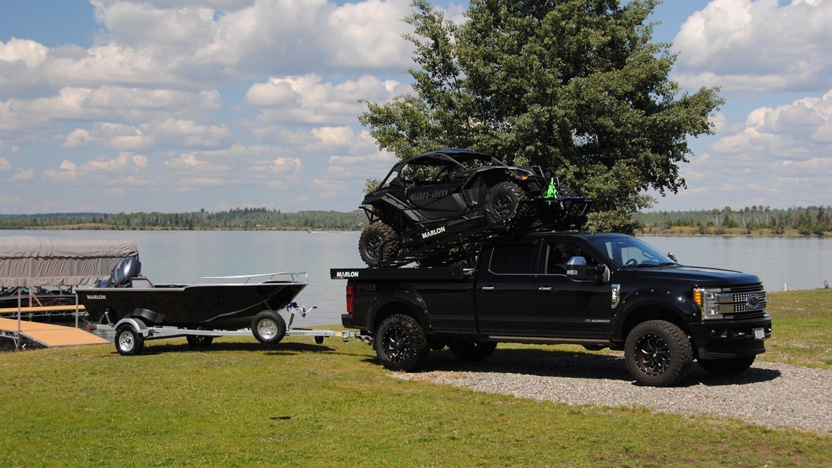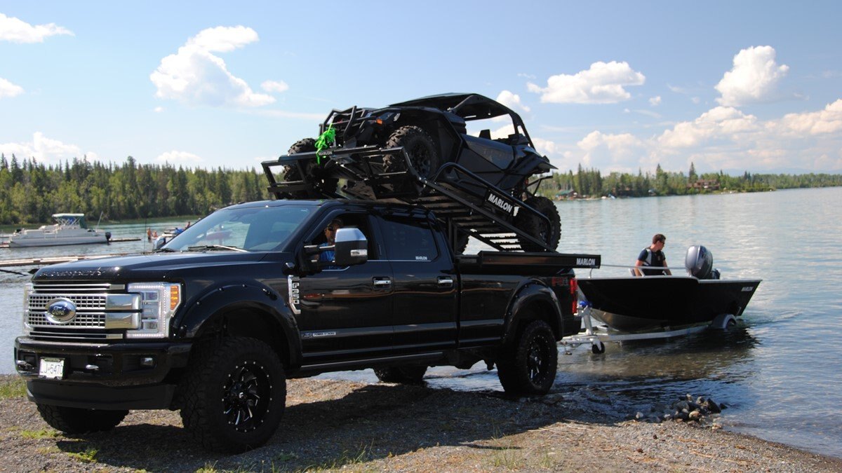 The Marlon Xplore II Riser takes your great Marlon snowmobile deck and transforms it into a great way to get your SxS out for some fun in the dirt and mud. Take your side by side camping, pull an enclosed trailer or pull your boat the choice is now yours! We have all of the side by side machines currently on the market today covered. As a standard configuration the Riser was designed to carry 2 and 4 door side by sides up to 120” max length. With the addition of the Riser Extension you can go to a maximum length of 165”s. Whether your side by side is 50”s wide or 76”s wide the Marlon Riser has you covered! The riser is standard with a number of features our SxS deck is famous for. Features like the positive park front tire cradles, Marlon’s unique tire tie down system, Marlon’s traction grips, side safety loading bars, winch plate or securement point to use your side by side winch to pull your machine on if need be. The 2018 Marlon snowmobile decks come with a new telescoping snowmobile ramp that has been designed with new extrusions to incorporate the wide superglides for the wider snowmobile stances and the 50” wide side by sides. For the larger machines we have optional 10’ or 12’ single folding ramps the choice is yours. Get your riser and go Xplore!