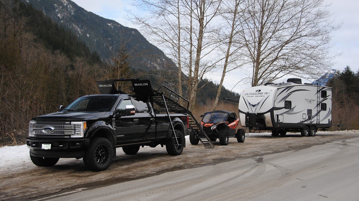 Our latest side by side (SXS) deck was designed to carry 2 and 4 door side by sides up to 120” max length. Now capable of carrying the new 50" wide machines up to the widest factory SXS at 76" with the new addition of the optional SXS Extension you can now carry machines up to 165" in length! The deck comes standard with 10’ ramps that have 4” side safety edges making them safe and secure when loading and unloading. Carry your side by side to the starting line or staging area with your camping trailer in tow. The Marlon Xplore II SXS Deck is specifically designed so you don’t lose any turning radius pulling a trailer. This unique design allows you to easily change from a short box to a long box within minutes. The solid mount winch plate will accommodate a Warrior 3500 xt winch and is designed with a pull point, so you can use your SXS winch if you are equipped. We recommend bolting your Marlon Xplore II SXS Deck to your truck with the supplied mounting kit. Machine securement is made easy with our unique tie down system. We have designed the Marlon Xplore II SXS Deck to have a positive park front tire position which gives the driver a real feel when your machine is loaded to the correct position. All loading ramp and deck ramps have rung protectors on them to assist in traction which is a huge safety feature. When not in use the ramps slide in and are secured under your toy! Now go out and Xplore! |