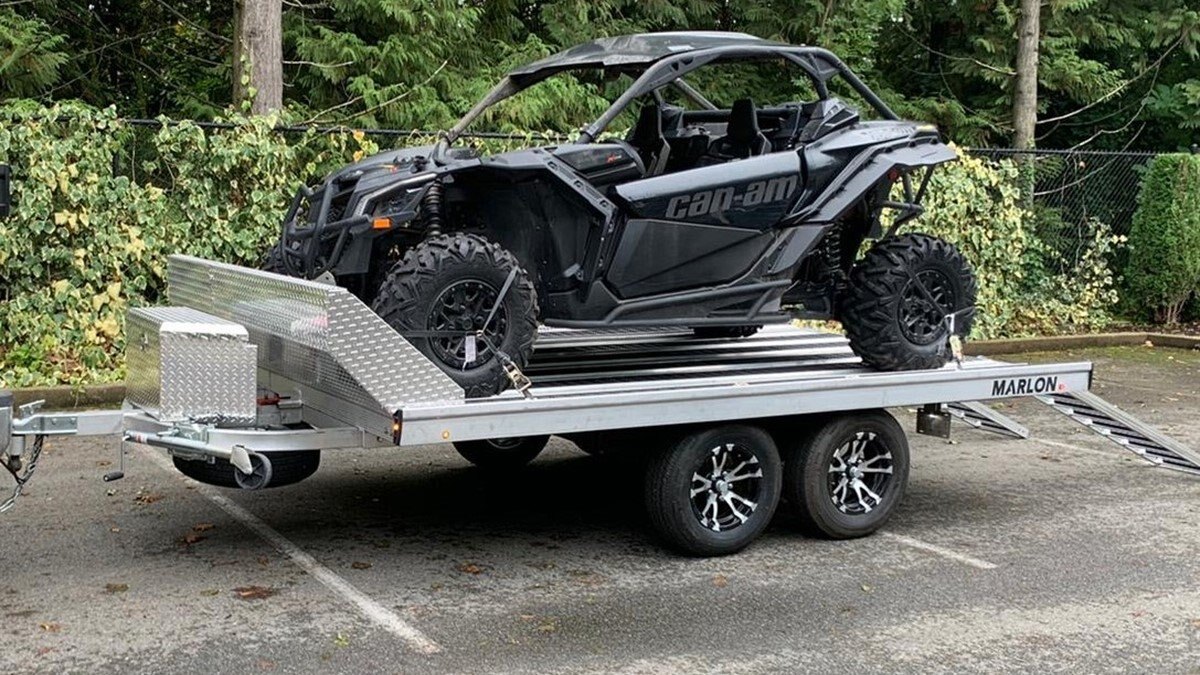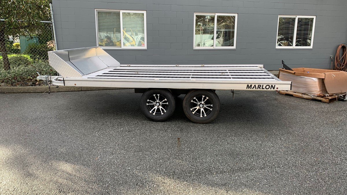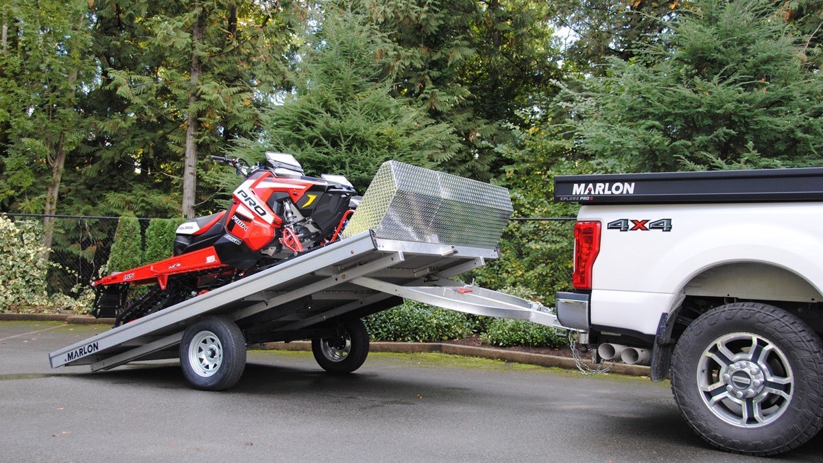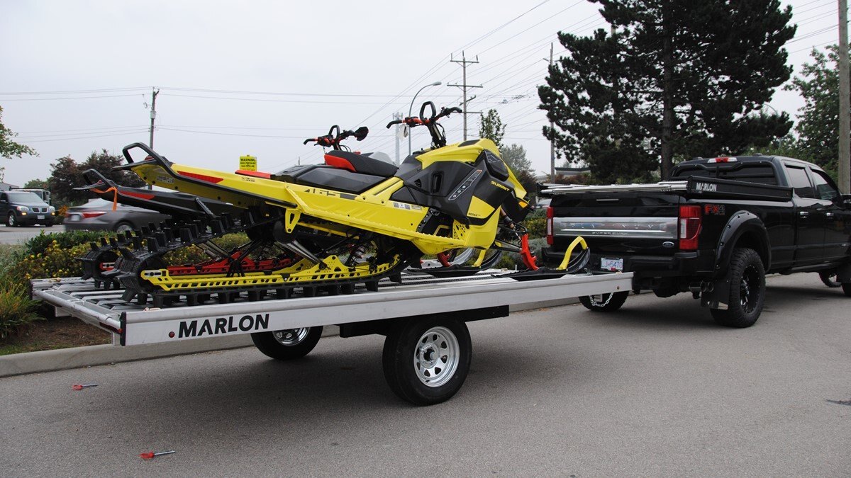 The Marlon New Product development team sat down with the goal of developing a trailer that would do more, could be used for Multiple uses and could be used in Multiple seasons. Development code name was MultiFunctional Trailer. We wanted it lite so it can be towed behind a selection of vehicles to haul your sled, ATV, Trailer SxS, stack of wood. ……that’s why it is all aluminum! The sled industry needs a wide trailer for the larger trail machines and a narrow trailer for mountain sleds. We used our experiences and knowledge from 20+ year’s in the sled deck industry and adapted the slide out sides to work on our new offering MultiFunctional two place trailers. Tilt trailer or drive on back off – it’s your call our trailer does both! We also looked at do we develop a drive on drive off trailer and did but then asked why? Why because the drive on drive off trailer was brought to the industry many years ago when sleds did not have reverse, It adds cost for the additional 2’ of “V nose” decking that is not used and takes up more valuable storage area. We studied users and found that most now reverse off of their trailer because there is no room to the side of their truck in parking lots, we also found they need the rear ramp to drive back on so why not just back off. Why not spend the extra time taking down and putting up the front ramps for sledding or going for a beer after a great day exploring! But we wanted more…. And we wanted to be the best and to grow the declining sled trailer business so we kept this in mind and looked for things we could do from the ground up. Radial Tires, Galvanized rims, Galvanized torsion axles with better than usual carrying capacity. Extruded sides which you may recognize from our sled decks. With tie down points down the entire side at a 45 degree angle allowing you to tie down dirt bikes, various items you may carry from the lumber yard or to the dump or your ATV or side by side using our tire tie downs. Center extrusion allowing you to tie the center of the trailer items like dirt bikes and ATV’s things that need to get to the cottage. Slide out sides as mentioned earlier and aluminum decking. The pure strength of the aluminum extrusion vs. a thin sheet of plywood allows you to tie down items such as ATV’s and not worry about the tires sinking into the plywood and straps coming loose while driving in a thunderstorm – confident that there is no plywood stretching because it has become wet. Our trailer has been designed for all seasons and to meet your needs. It can be used for your current and future toys! . |