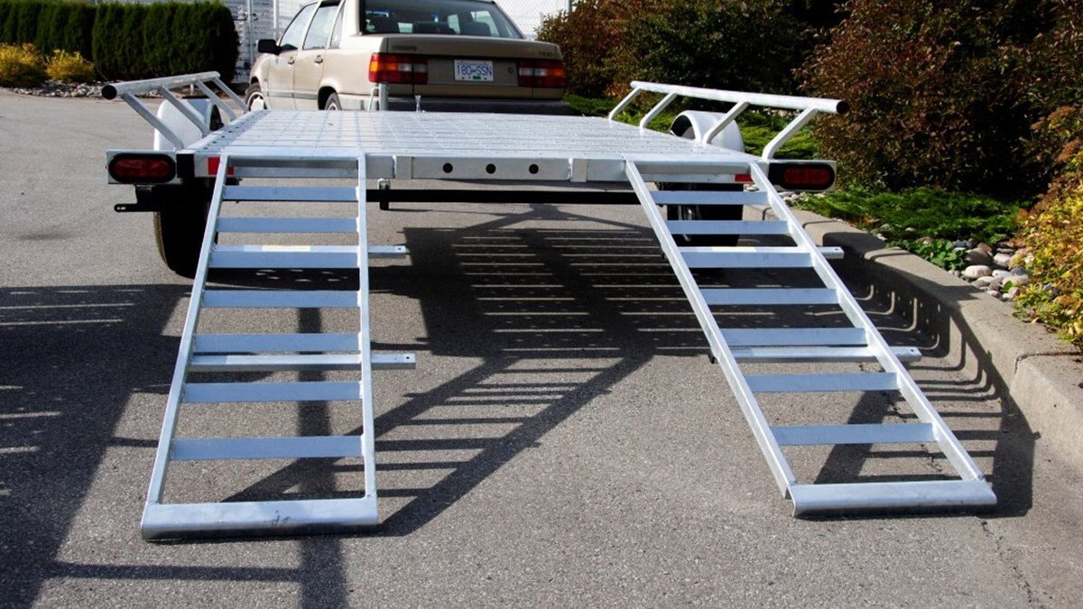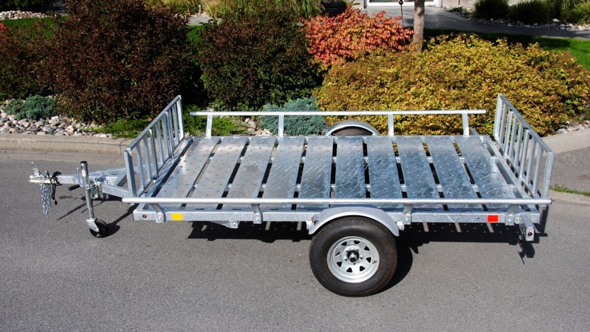 The Marlon Rat-02 Utility Trailer is the upgrade to our bestselling ATV trailer! The Rat-02 comes standard with steel floor decking with punched floor for grip! It is available in powder coated paint or galvanized finish. We have designed this trailer so that the loading ramps, hook on over the rear trailer frame for rear loading or hook onto the side bars for easy side loading of ATV's. The ends of each steel floor panel have notches cut out for securing straps. The loading ramps can be stored on the trailer, one in the front and one in the back, or both in the front depending on what you have loaded. The Rat-02 complies with Canadian and US D.O.T. requirements. * Please note to obtain full capacity of trailer, side rails MUST be installed. . |